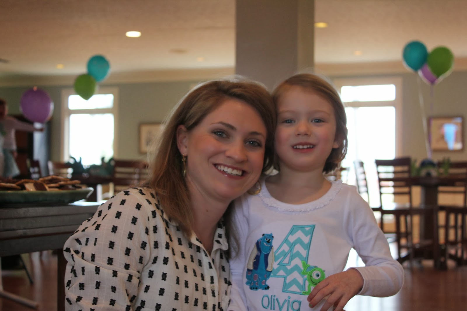 We decided this year to celebrate Olivia's 4th birthday and Ford's 2nd birthday with a joint birthday party. Olivia is in love with Monsters University and Ford could really careless so Monsters University it was. When she first requested it I found myself trying to persuade her to do Mickey Mouse or something else and then realized you know what, it's HER birthday, let her have what she wants. So reluctantly, I started planning a monster party only to find it was a great idea. It made my girl so so happy and smile ear to ear all day. That's all I needed. At the end of the day she said "I had the best day, you are a wonderful mommy." I knew right then and there that she had all her dreams come true for her 4th birthday party.